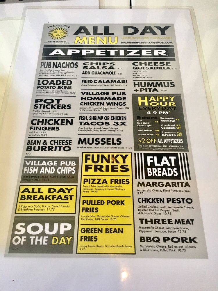 Welcome to Village Pub Palm Springs, a vibrant fusion of sports bar and pub culture located in the heart of downtown Palm Springs. This lively venue offers a casual atmosphere perfect for sports enthusiasts and families alike. From the moment you step in, the cheerful vibe and impressive service invite you to relax and unwind.